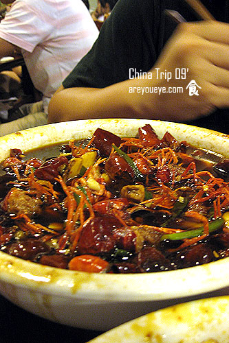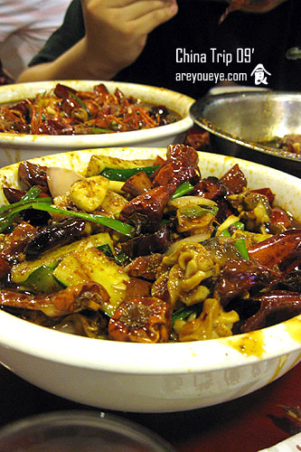 成 都好像有几个乔一乔怪炒,据说是这家的亲戚们开的,但是味道还是这家的好。所谓怪炒,就是用了很多又辣又麻又香的料来炒。我们四个人点了【干锅鸭唇】入味 的鸭唇炸酥了然后和炒料混炒而成,香酥肉嫩,回味无穷。【鱼香小龙虾】小龙虾用油酥后,用鱼香汁怪炒而成,吮吸着小龙虾里面那个鱼香的汤汁让人边吃边留口 水。【怪炒田螺】挑好的田螺肉用姜葱蒜,干辣椒和怪炒料一起湿炒,十分可口,菜中的黄瓜条更是吸取汤汁精华,香辣可口但不失清爽。有汤汁的菜,吃完后可以 让他们家菜进去。我们让用鱼香锅和怪炒锅各加10元钱的菜(苕粉、黄瓜、莴笋、土豆等),这些菜吸入汤汁的味道,相当的可口。