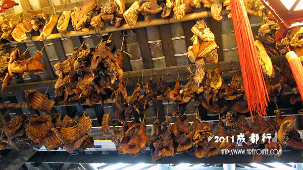 某日老同学带我们去成都近郊的洛带古镇游玩。走进一家餐馆的大门,抬头一望,太壮观啦。。。。这么多香肠!!!!