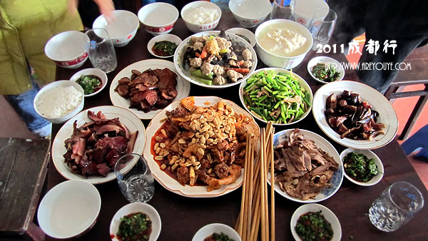 洛带聚居了很多当年湖广填四川的客家人,所以这里能吃到客家菜,和客家川菜。最有名的是伤心凉粉,那个剁椒辣得你真的是一把眼泪一把鼻涕的。太辣了可以吃点凉面缓一缓,如果还不行,就得吃碗红糖凉糕了。