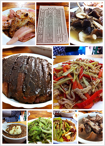我们两男一女,点了:泡菜、蒸蛋、荷叶粉蒸肉、火爆腰花、仔姜肉丝、干煸苦瓜、烧香菌、莲藕排骨汤。