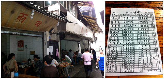 这是我回到成都的第二天中午,和两个海龟的老友相约来到雨田。虽然在市中心,但是这条巷子里的房子都是比较老比较破旧的。雨田原来本店的楼是两层都是餐厅,后来又把隔壁两家铺面收购过来,因为吃饭时间这里会坐满排队。雨田的菜式有:蒸菜、凉拌菜、烧菜、汤和冒菜,价格从几元到三十多不等。所有菜式都在一张点菜单上,非常明了。