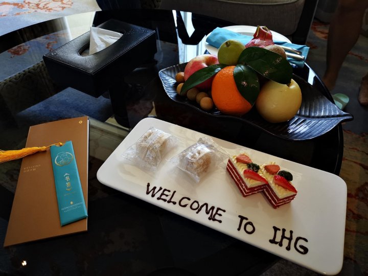 作为洲际大使会员,酒店还赠送了水果和巧克力。