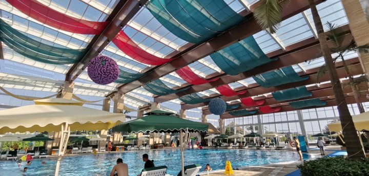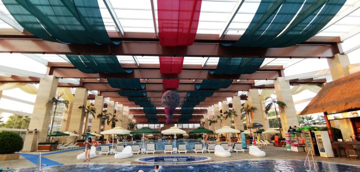 酒店最棒的设施就是游泳池了。室内室外,大大小小十几个。室内有儿童玩耍的泳池和设施(攀登架、滑梯等),还有不同深浅的恒温泳池,桑拿,一年四季都可以使用。室外有很大的无边泳池,是很多人打卡拍照的地方,还有浅水池小朋友们可以在上面划手摇船(另外收租船费)。泳池都保养得很好,也很干净。有很多救生员巡视并提醒小朋友们注意安全。