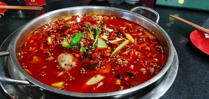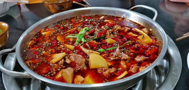 我们头天晚上游泳玩太晚,于是到黑龙滩镇上吃了家人气很旺的火锅兔。这家味道不错而且不贵。