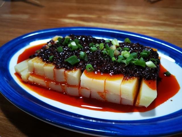 川北凉粉,香浓的红油配上豆豉酱,浇在切成条的豌豆凉粉上,Q弹爽口。