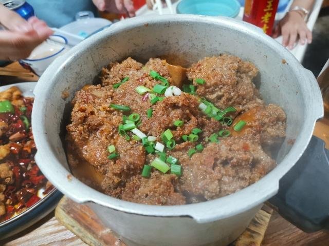 高压锅粉蒸肉,大坨大坨的肉嘎嘎,蒸得耙唧唧的,入口即化。