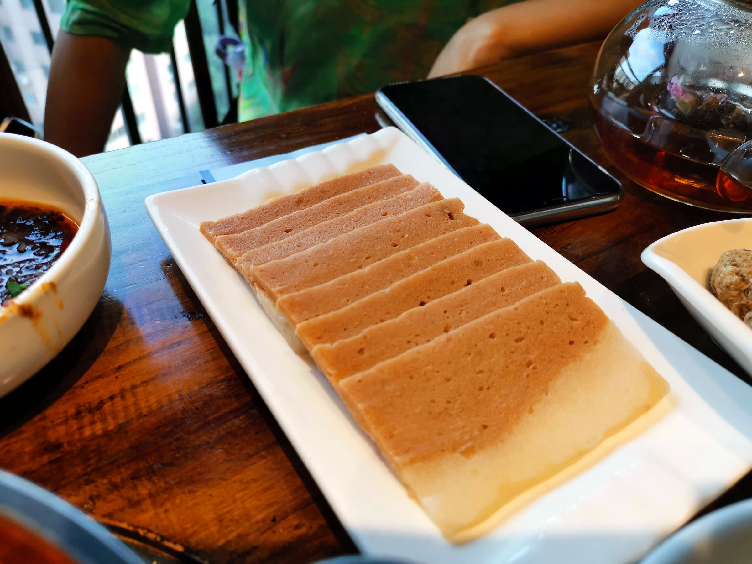 这采用的是个人小锅,有番茄汤、麻辣汤等锅底可以选择。菜品除了一些小吃,大多都是一些不常见的蔬菜、枝叶、菌类和大豆蛋白制作的“肉”类。我最喜欢的是不常吃到的冰菜(菜叶表面有长一层像露水结冰的东西,口感清爽中带一丝苦涩)和素五花肉(带有一些五花肉的韧性)。