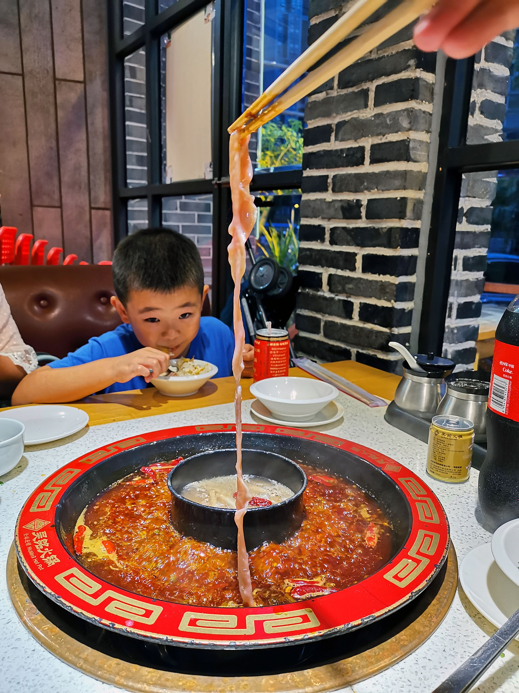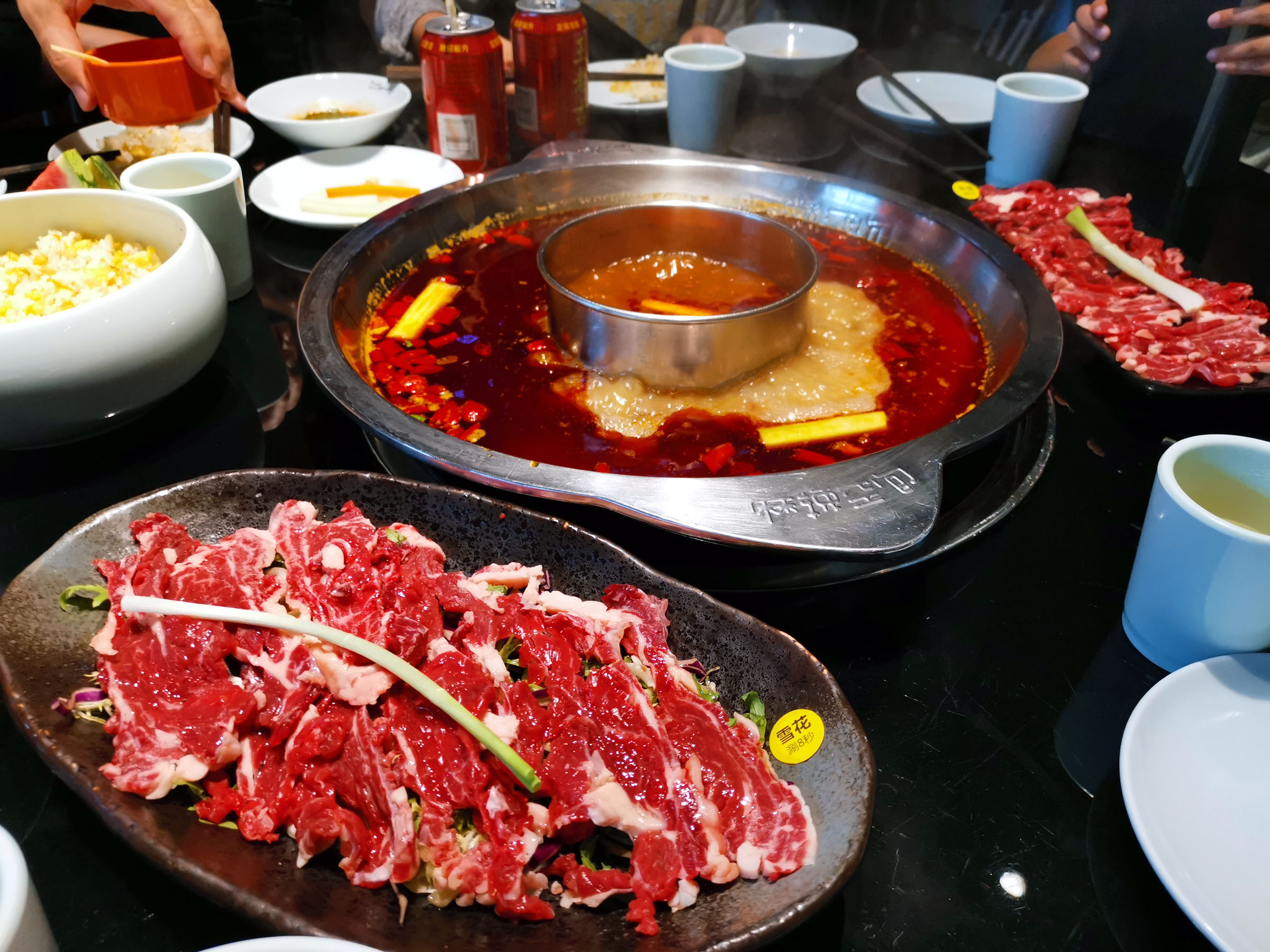 吴铭火锅是重庆火锅。了解川渝火锅的都知道,成都地区的火锅大多是清油锅底而重庆火锅是牛油锅底。不过为了方便客户,在现在也可在重庆火锅店要清油锅底的,相对健康一点。因为有小孩,所以点了一个有清汤在中间的锅。虽然是清油锅底,但是浓郁的味道越煮越香。
