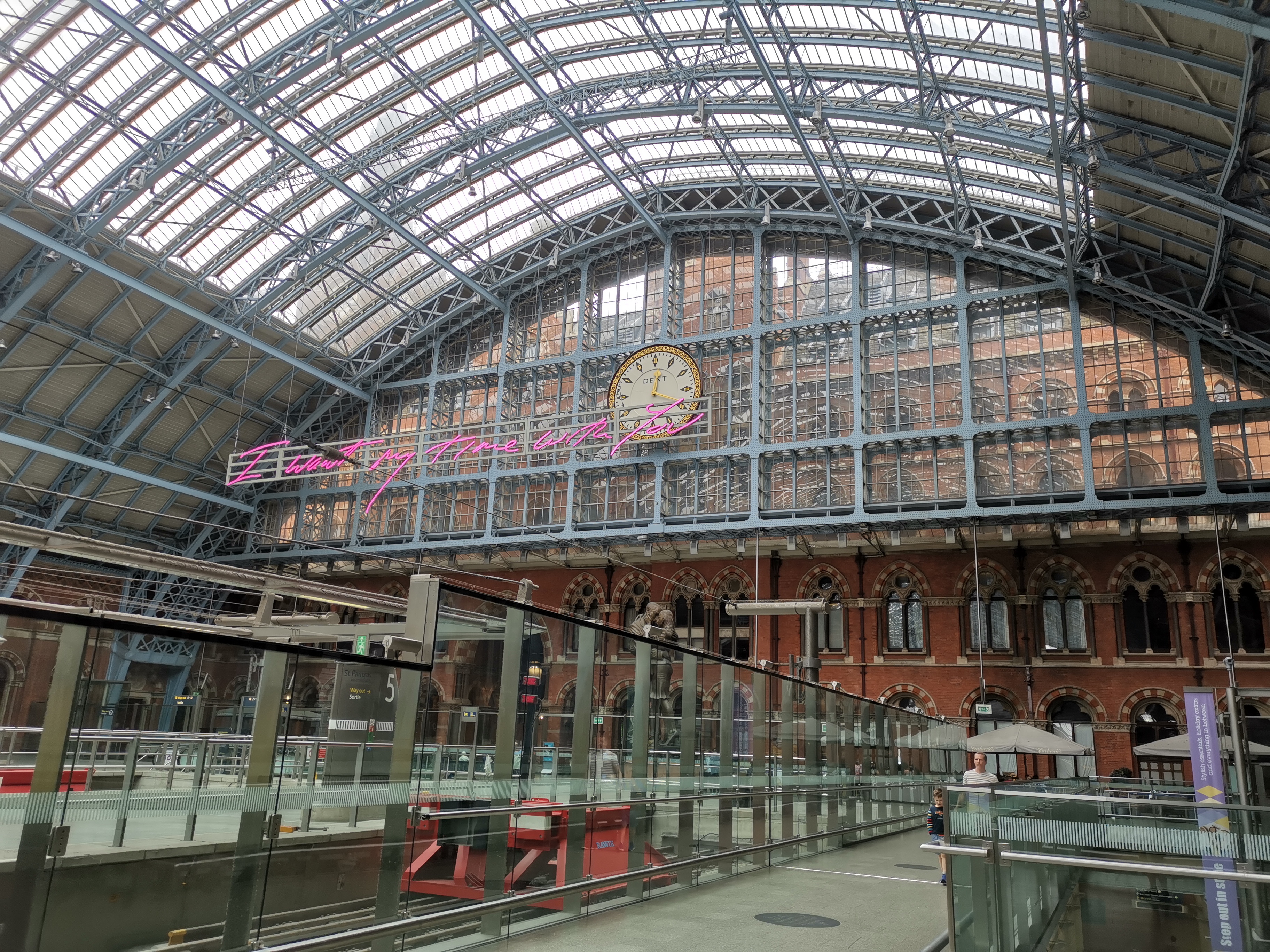 欧洲之星的伦敦站是在伦敦北边的St Pancras International车站,紧靠着King’s Cross车站(有哈利波特9¾号站台的车站)。这里交通很方便,多条伦敦地铁和区间火车交汇于此。火车站面积很大且分很多层,所以搞不清方向最好询问警察或者工作人员。